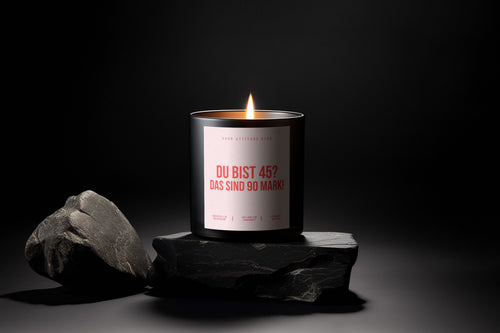 Du bist 45? Das sind 90 Mark! | Schwarze Luxuskerze | Rosa Etikett