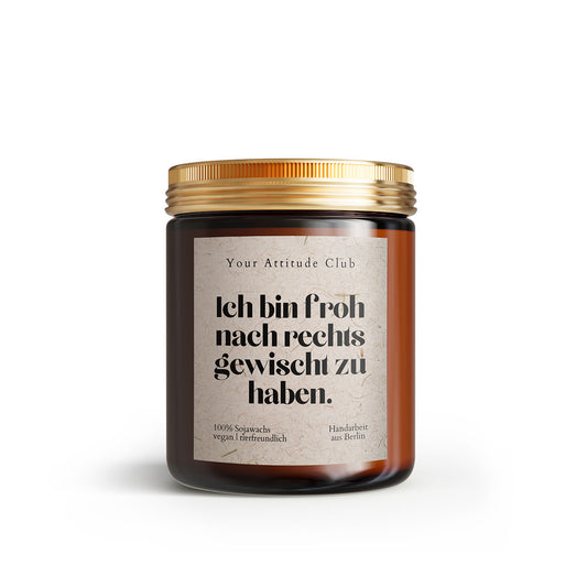 Ich bin froh nach rechts gewischt zu haben Kerze | Lustige Geschenkidee Tinder Date, Partner, Freundin, Freund, Duftkerze Sojawachs Your Attitude Club