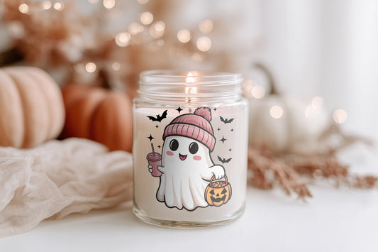 Ghost Coffee Candle Herbst Kerze Glas | vegane Sojawachs Duftkerze | Halloween Kerze Geschenkidee Frauen Cozy Autumn Pumpkin Candle