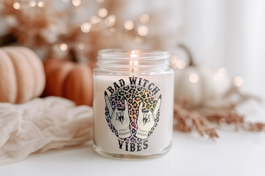 Bad Witch Vibes Halloween Kerze vegane Duftkerze Herbst Deko Geschenkidee Cozy Home Decor Sojawachs Kerze nachhaltig