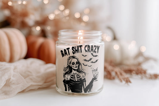 Bat Shit Crazy Halloween Kerze vegane Duftkerze Herbst Deko Geschenkidee Grusel Kerze Sojawachs nachhaltig spooky vibes