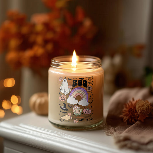 Retro Boo Kerze 🕯️ Halloween Deko Glas, Duftkerze Herbst, Geschenkidee Frauen, Home Decor, Sojawachs vegan, Kürbis Deko, Spooky Season