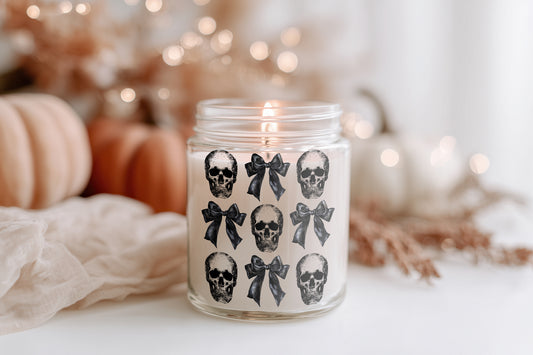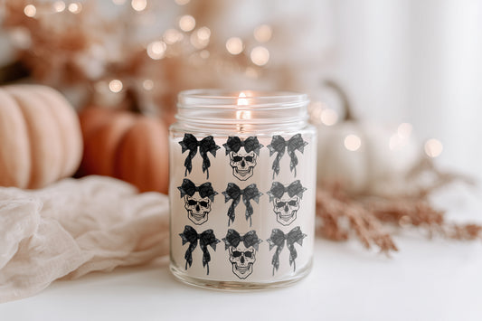 Skull Bow Kerze Halloween Duftkerze Glas vegan Sojawachs, Gothic Candle, spooky Herbstkerze Geschenkidee Frauen Deko