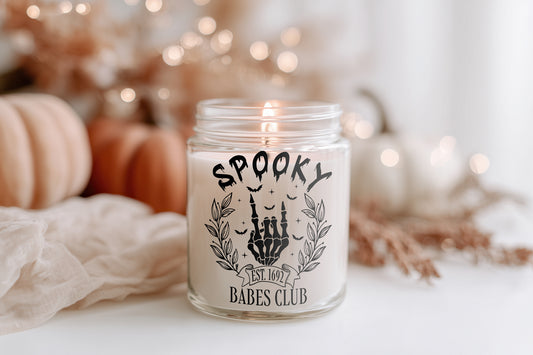 Spooky Babes Club Kerze Halloween Deko Glas | Herbst Duftkerze vegan Sojawachs Geschenk Deko Home Decor