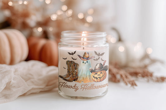 Howdy Halloween Kerze vegane Duftkerze im Glas, Herbstkerze, Halloween Deko, Cozy Home Candle, Geschenkidee Frauen, Sojawachs nachhaltig