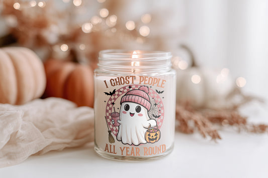 I Ghost People All Year Round Kerze vegane Duftkerze im Glas, Halloween Deko, Herbstkerze, Cozy Candle, Geschenkidee Frauen, Sojawachs nachhaltig