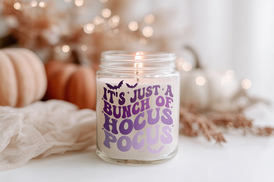 It’s Just A Bunch Of Hocus Pocus Kerze vegane Halloween Duftkerze, spooky Herbstdeko, nachhaltige Geschenkidee Frauen, Sojawachs Kerze im Glas