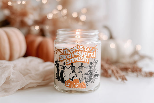 It Was A Graveyard Smash Kerze vegane Halloween Duftkerze, spooky Herbstdeko, lustige Geschenkidee Frauen, nachhaltige Sojawachs Kerze im Glas