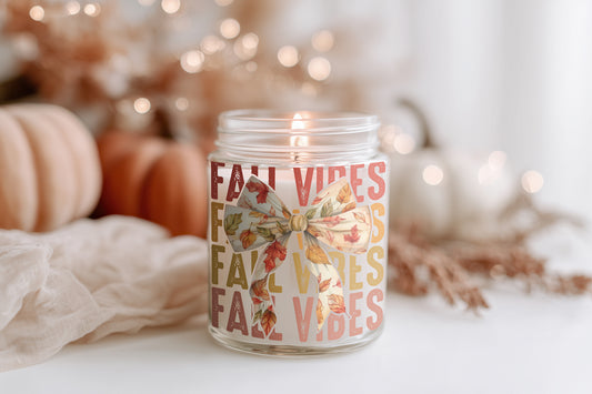 Fall Vibes Kerze Herbst Deko im Glas | Duftkerze vegan Sojawachs, Herbstkerze mit Schleife, Geschenkidee Frauen, Halloween Candle Cozy Home