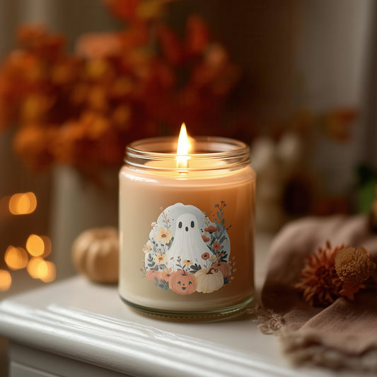 Herbst Kerze Fall Vibes Ghost | Duftkerze im Glas, vegane Sojawachs Kerze, Herbstdeko, Geschenkidee Frauen, cosy Autumn & Halloween Candle
