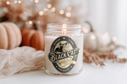 Black Cat Kerze – Halloween Kerze Sojawachs vegan, Herbst Duftkerze Gothic Style, Cozy Candle Geschenkidee Frauen, Hexen Deko Wohnzimmer