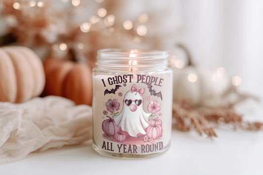 I Ghost People All Year Round Kerze vegane Halloween Duftkerze im Glas, Herbstdeko, Cozy Candle, Geschenkidee Frauen, nachhaltige Sojawachs Kerze