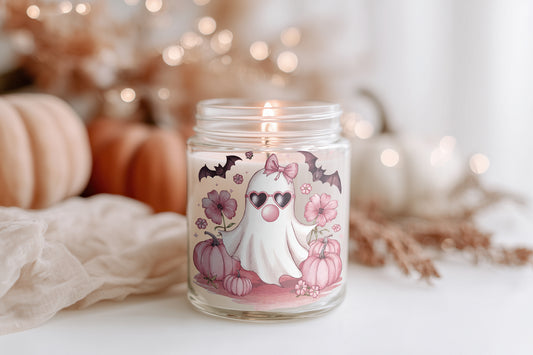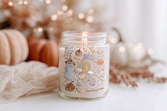 BOO! Kerze – Halloween Kerze Sojawachs vegan, Herbst Duftkerze süßes Motiv, Spooky Candle Geschenkidee Frauen, Cozy Herbstdeko Wohnzimmer