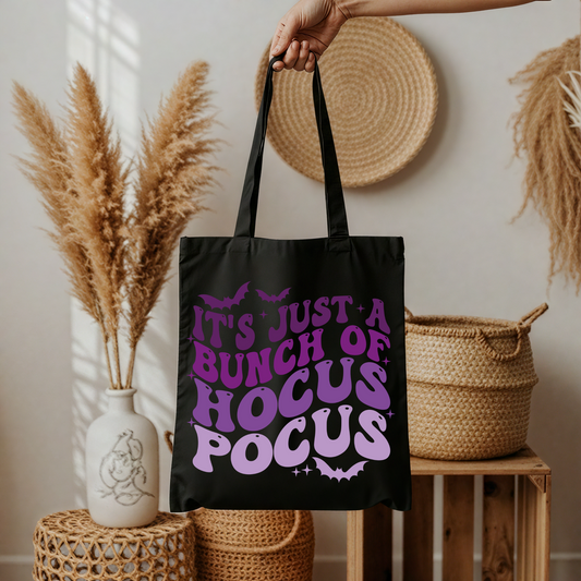 It’s Just a Bunch of Hocus Pocus Tasche beige – Halloween Stoffbeutel Baumwolle, spooky Hexen Tasche, A4 A3 Aufbügler für Shirt Kissen Jacke, handmade DTG