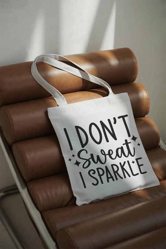 I don’t sweat I sparkle Baumwolltasche Stoffbeutel Gym Bag Fitness Tasche Sport Motivation Spruchbeutel nachhaltig Schultertasche Shopper Einkaufstasche