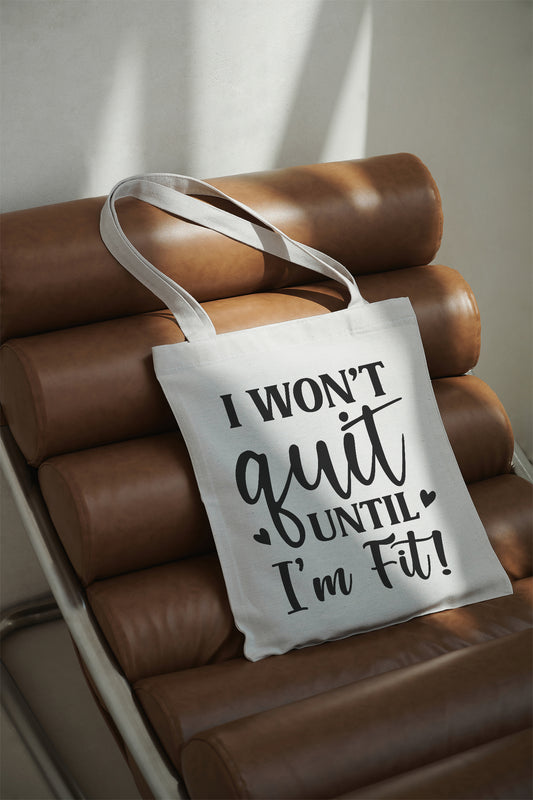 I won’t quit until I’m fit Baumwolltasche Stoffbeutel Gym Motivation Bag Fitness Spruch Sporttasche nachhaltig Geschenk Frauen Yoga Workout