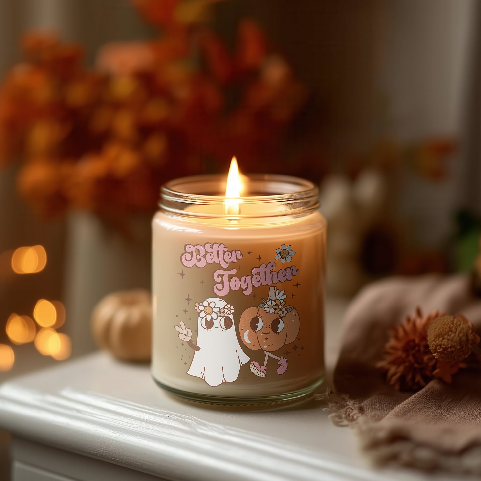 Better Together Kerze – Herbst Kerze Sojawachs vegan, Halloween Duftkerze, Cozy Candle Geschenkidee Pärchen & Freundinnen, Herbstdeko Wohnzimmer