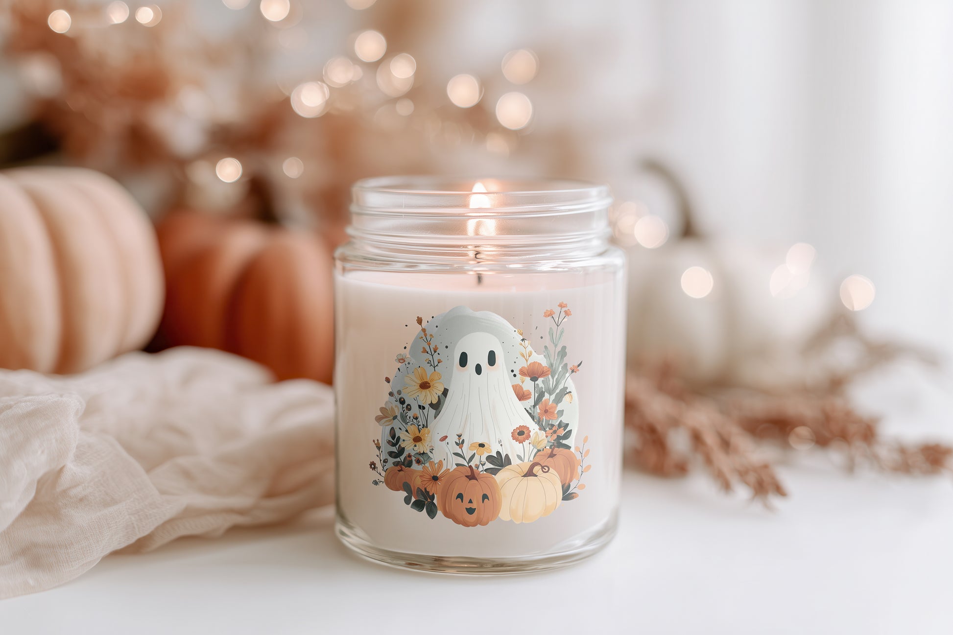 Ghost Pumpkin Candle Herbst Kerze Glas | vegane Sojawachs Duftkerze | Halloween Kerze Geschenkidee Frauen Cozy Autumn Candle