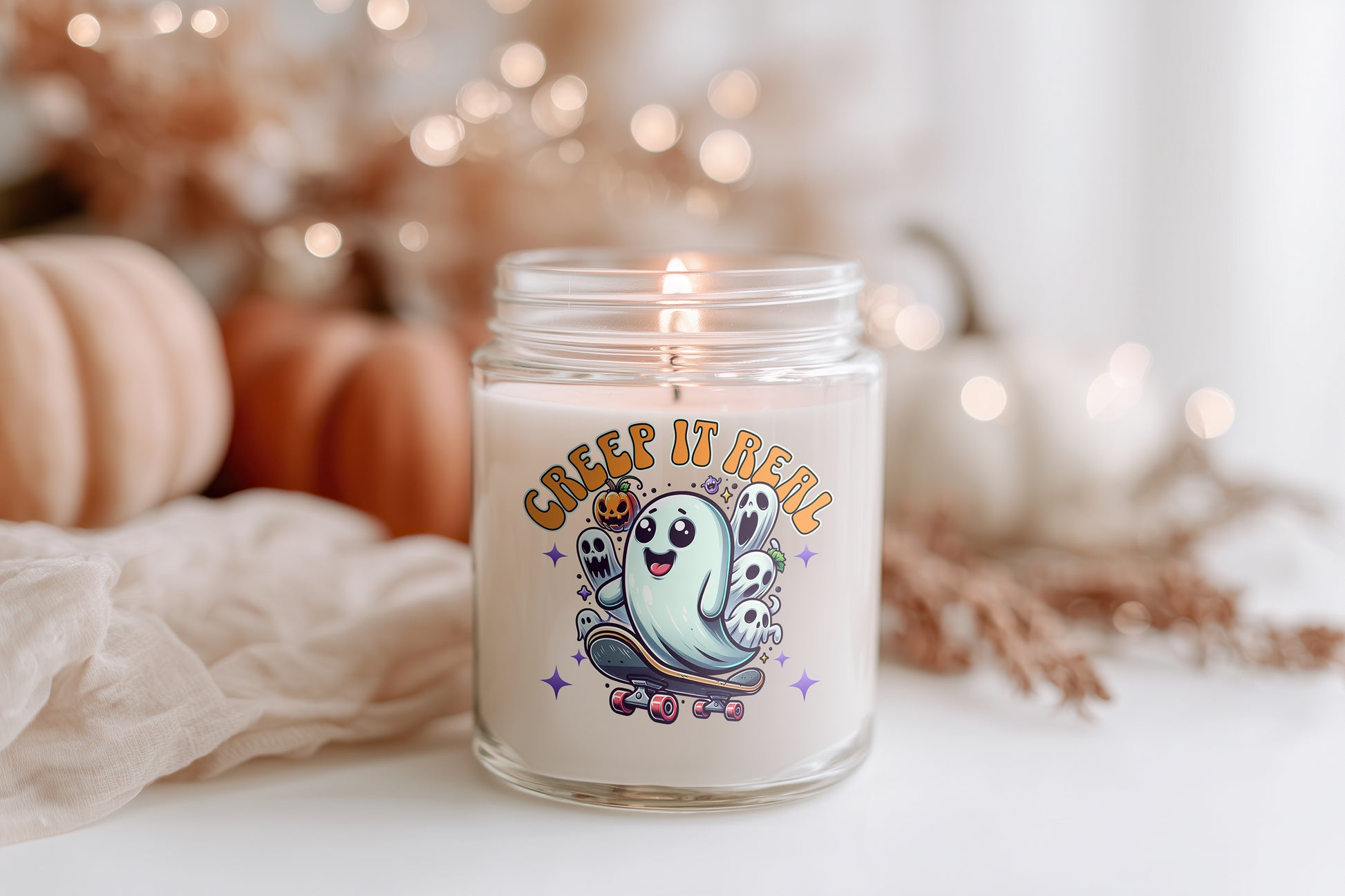 Halloween Kerze Glas Creep It Real | Lustige Ghost Duftkerze Sojawachs | Herbstdeko Geschenkidee Frauen | Cozy Candle Home Decor
