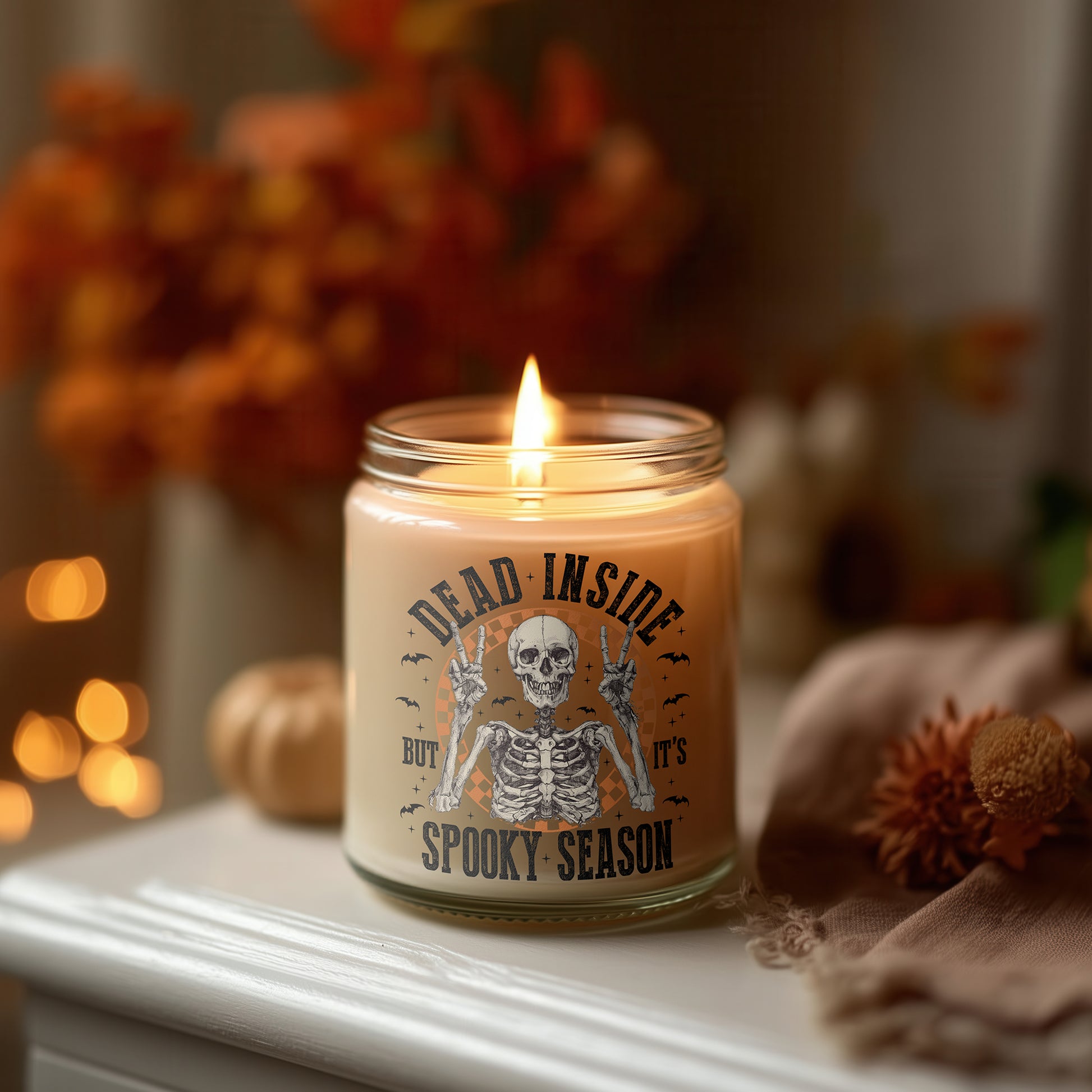 Halloween Kerze Glas Dead Inside Spooky Season | Lustige Skull Duftkerze Sojawachs | Herbstdeko Geschenkidee Frauen | Cozy Candle Home Decor