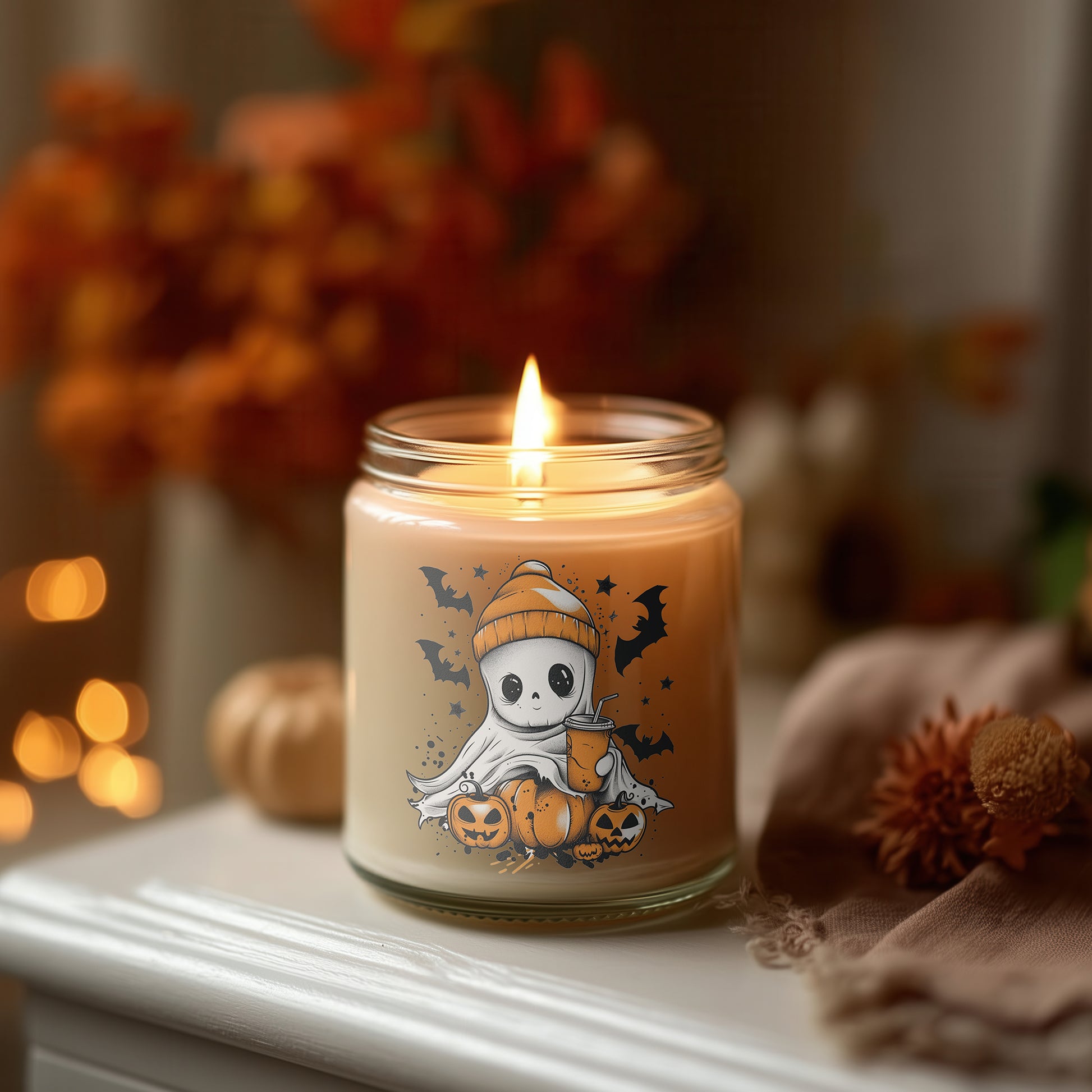Halloween Kerze Glas Cute Ghost Coffee | Lustige Herbst Duftkerze Sojawachs | Geschenkidee Frauen | Cozy Candle Home Decor Herbst Deko