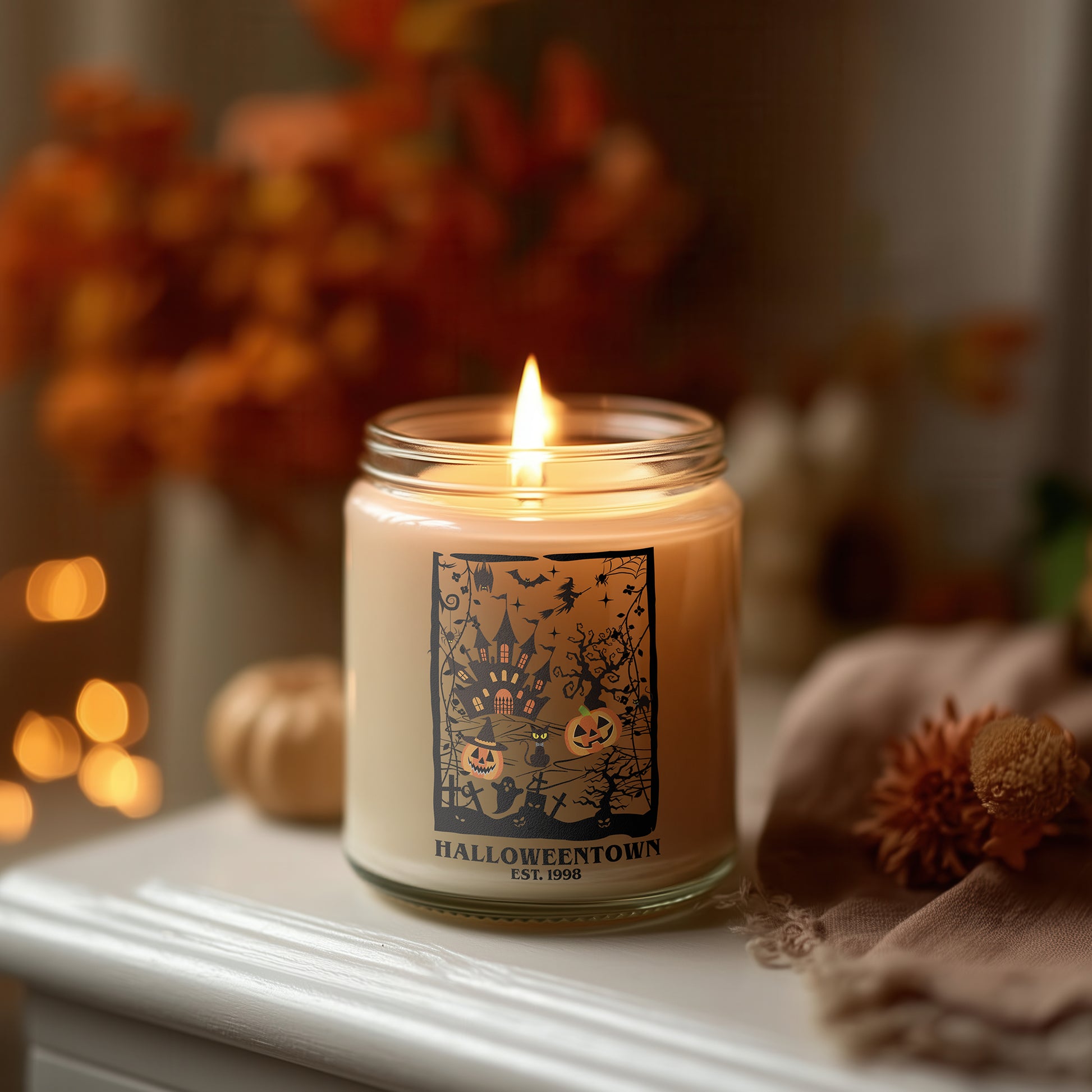Halloween Kerze Halloweentown | vegane Duftkerze Glas, spooky Season, Herbst Deko, Geschenkidee, Cosy Halloween Sojawachs Kerze