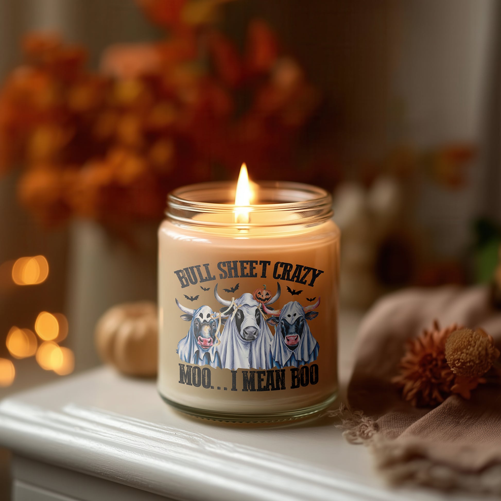 Halloween Kerze Glas Bull Sheet Crazy | Lustige Kuh Duftkerze | Herbstdeko Geschenk Frauen | Sojawachs Candle Home Decor