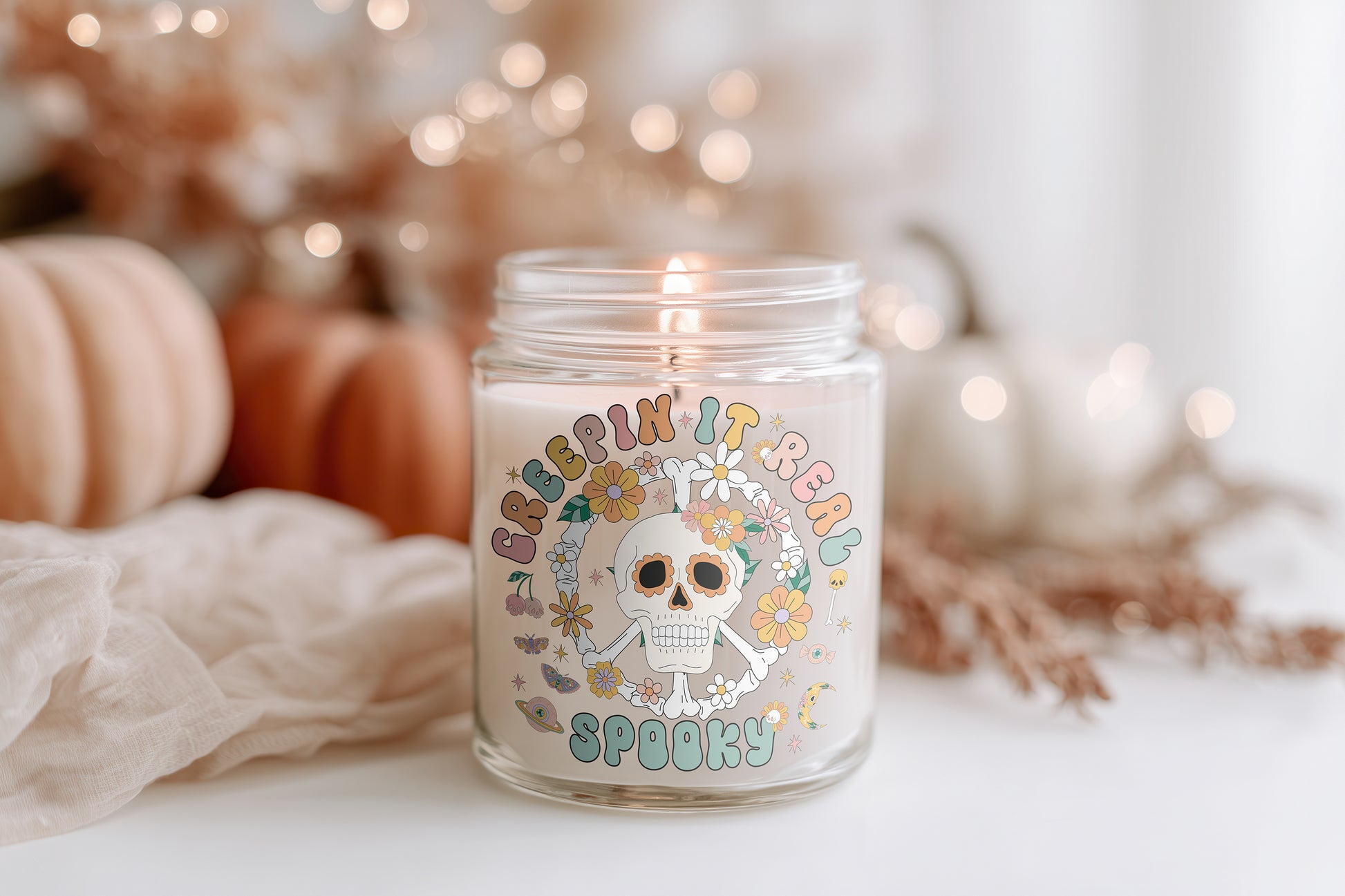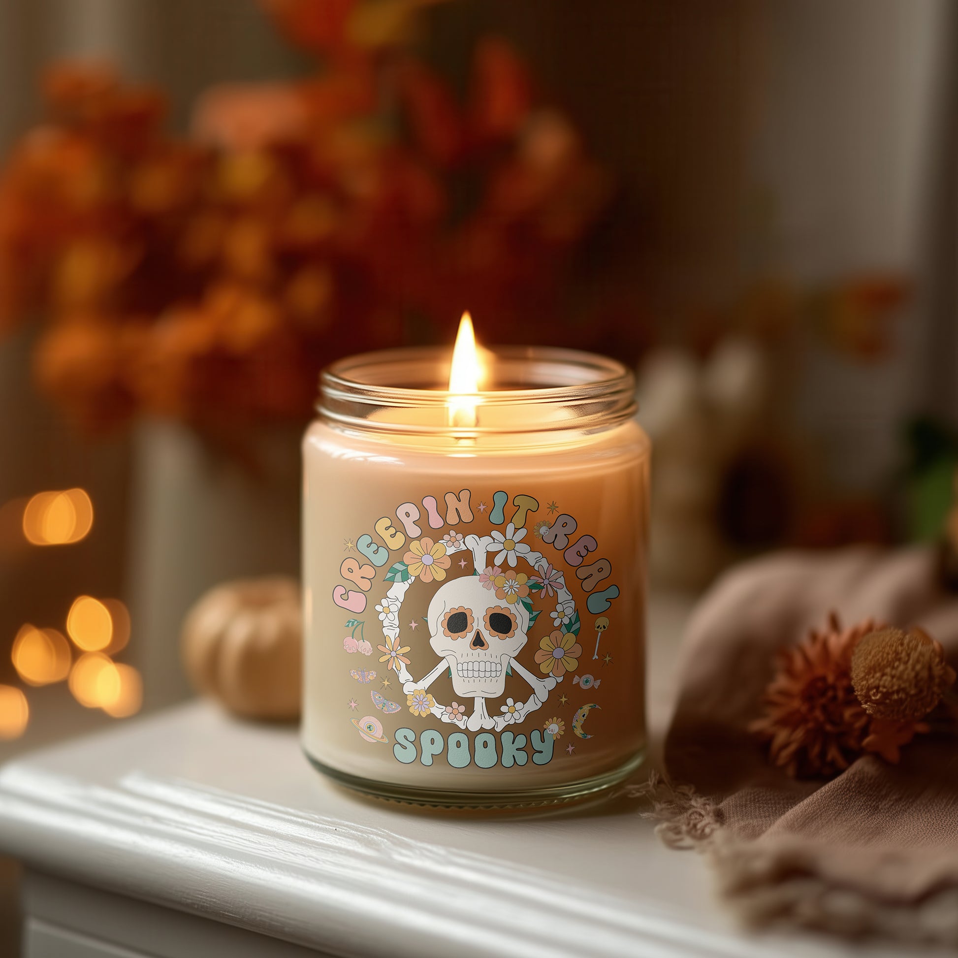 Halloween Kerze Glas Creepin’ It Real Spooky | Lustige Skull Duftkerze Sojawachs | Herbstdeko Geschenkidee Frauen | Cozy Candle Home Decor