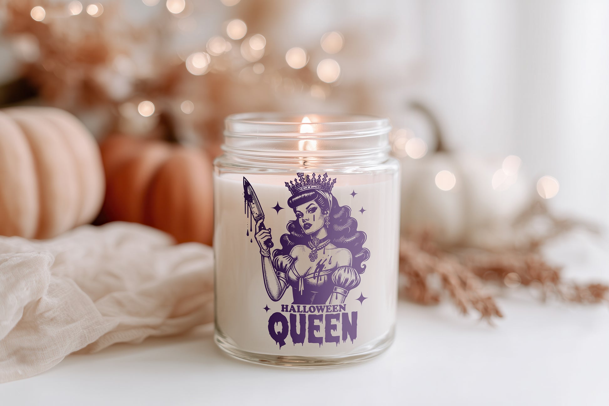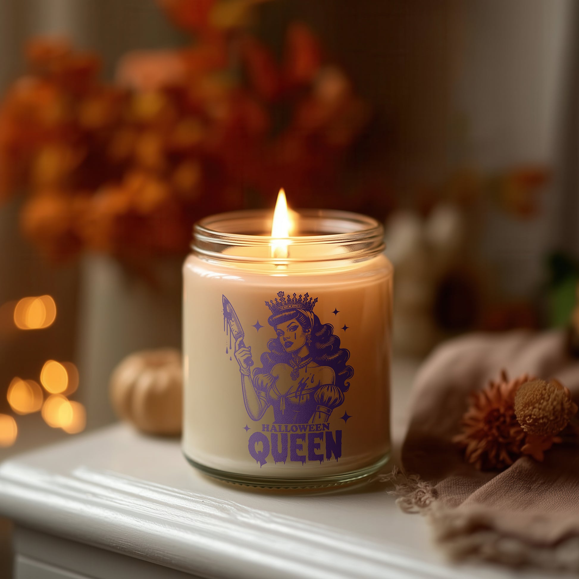 Halloween Queen Kerze vegane Duftkerze im Glas Halloween Deko Geschenkidee spooky season candle