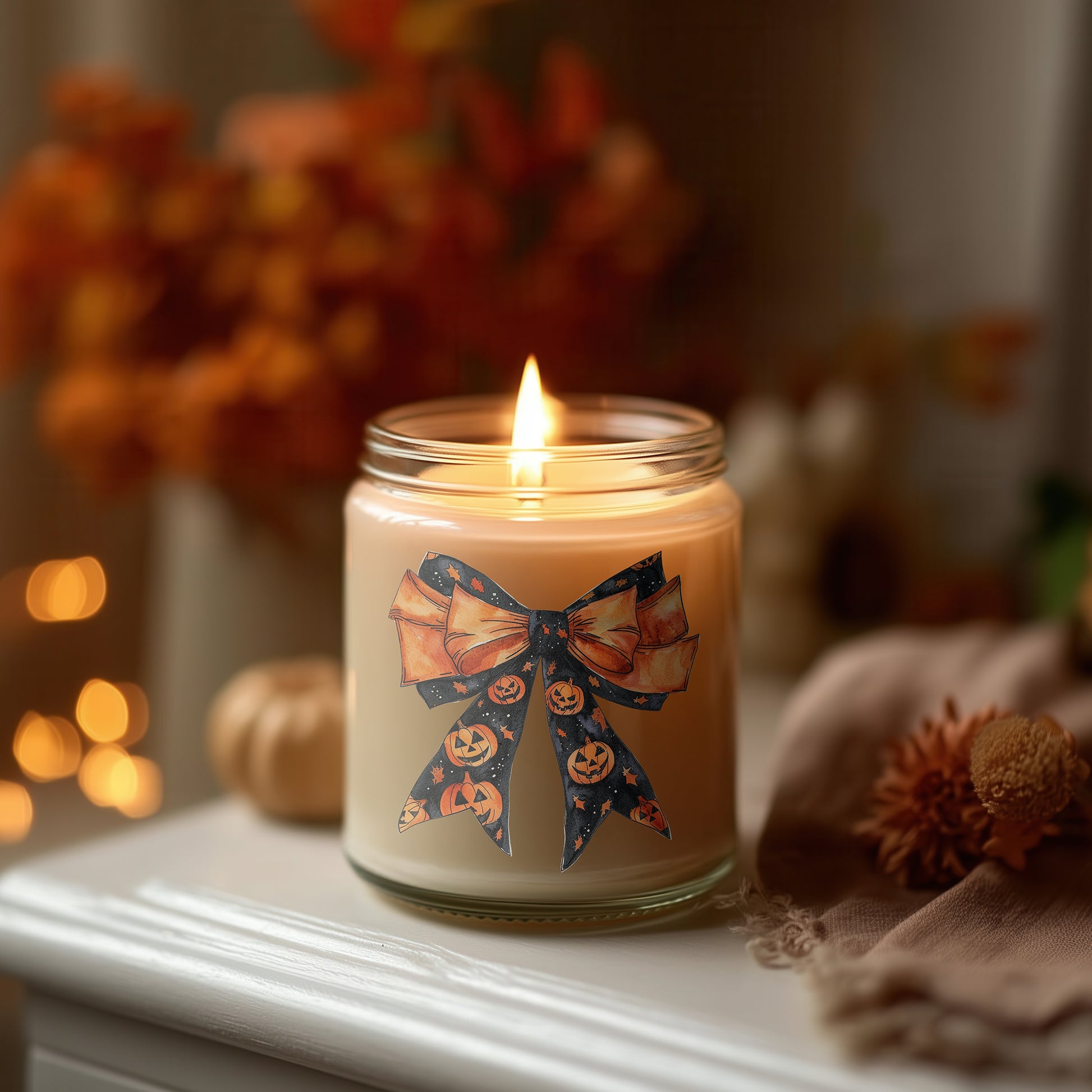 Halloween Schleifen Kerze Glas-Duftkerze Geschenkidee | Kürbis Deko, Herbstkerze, vegane Sojawachs Kerze im Glas, Cozy Season Deko