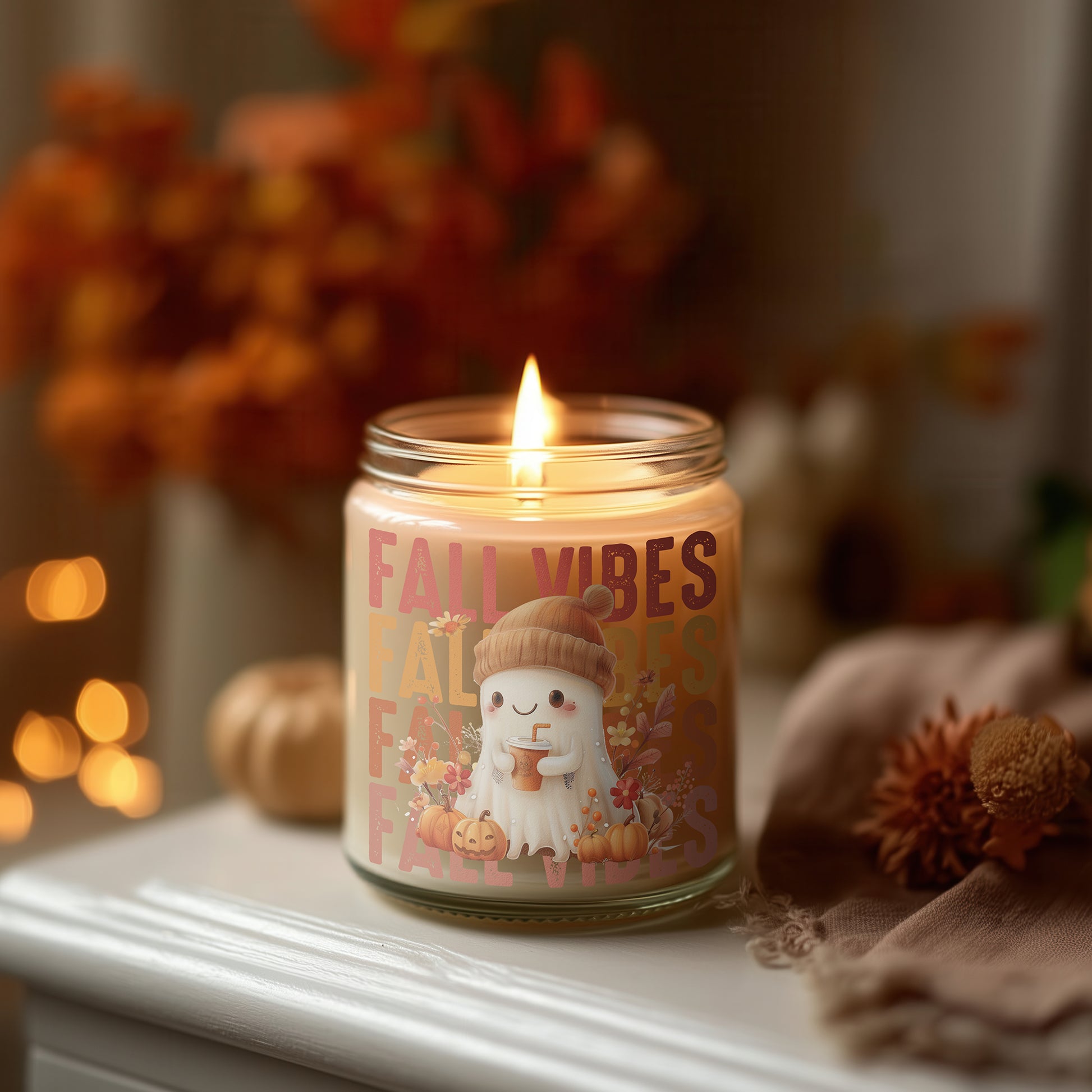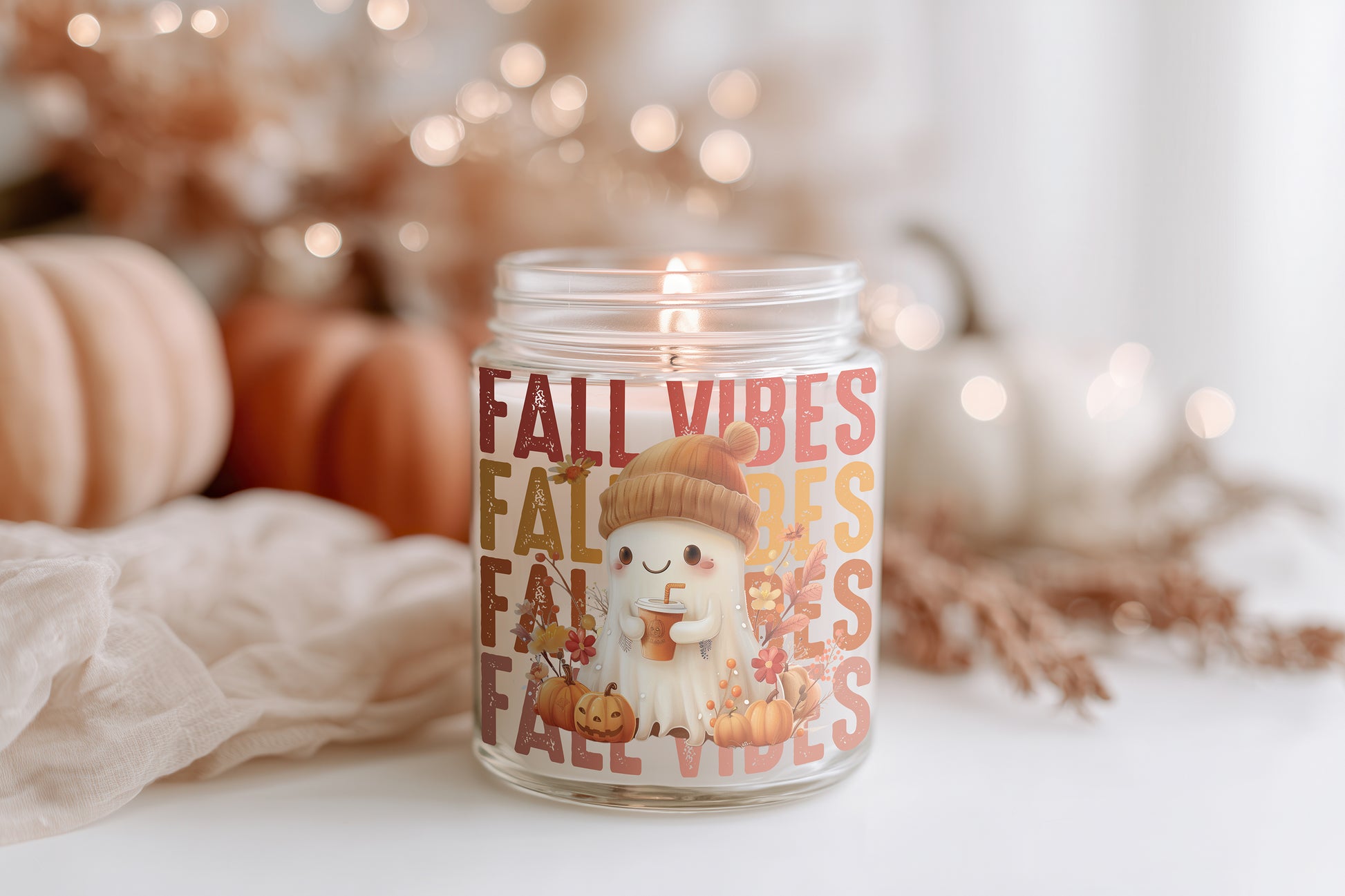Herbst Kerze Fall Vibes Ghost | Duftkerze im Glas, vegane Sojawachs Kerze, Herbstdeko, Geschenkidee Frauen, cosy Autumn & Halloween Candle