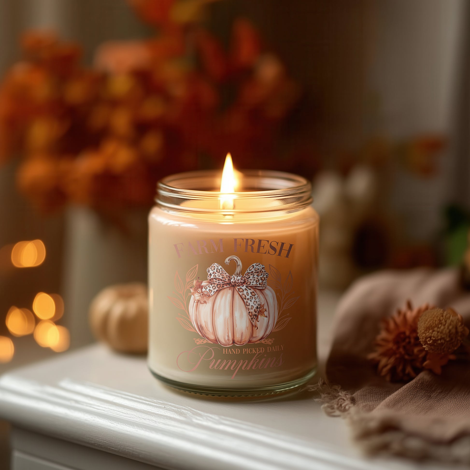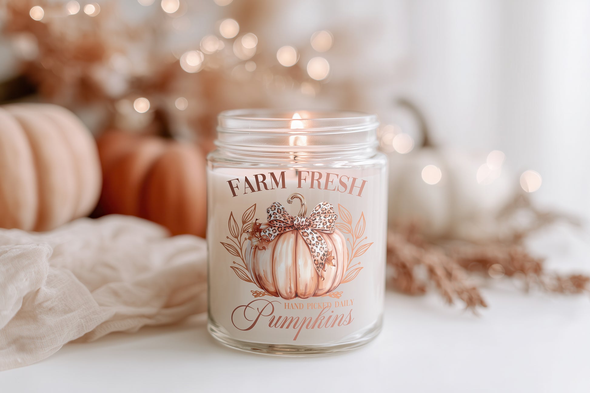 Herbst Kerze Glas Farm Fresh Pumpkins | Vegane Duftkerze Sojawachs | Halloween Deko Geschenkidee Frauen | Cozy Candle Home Decor