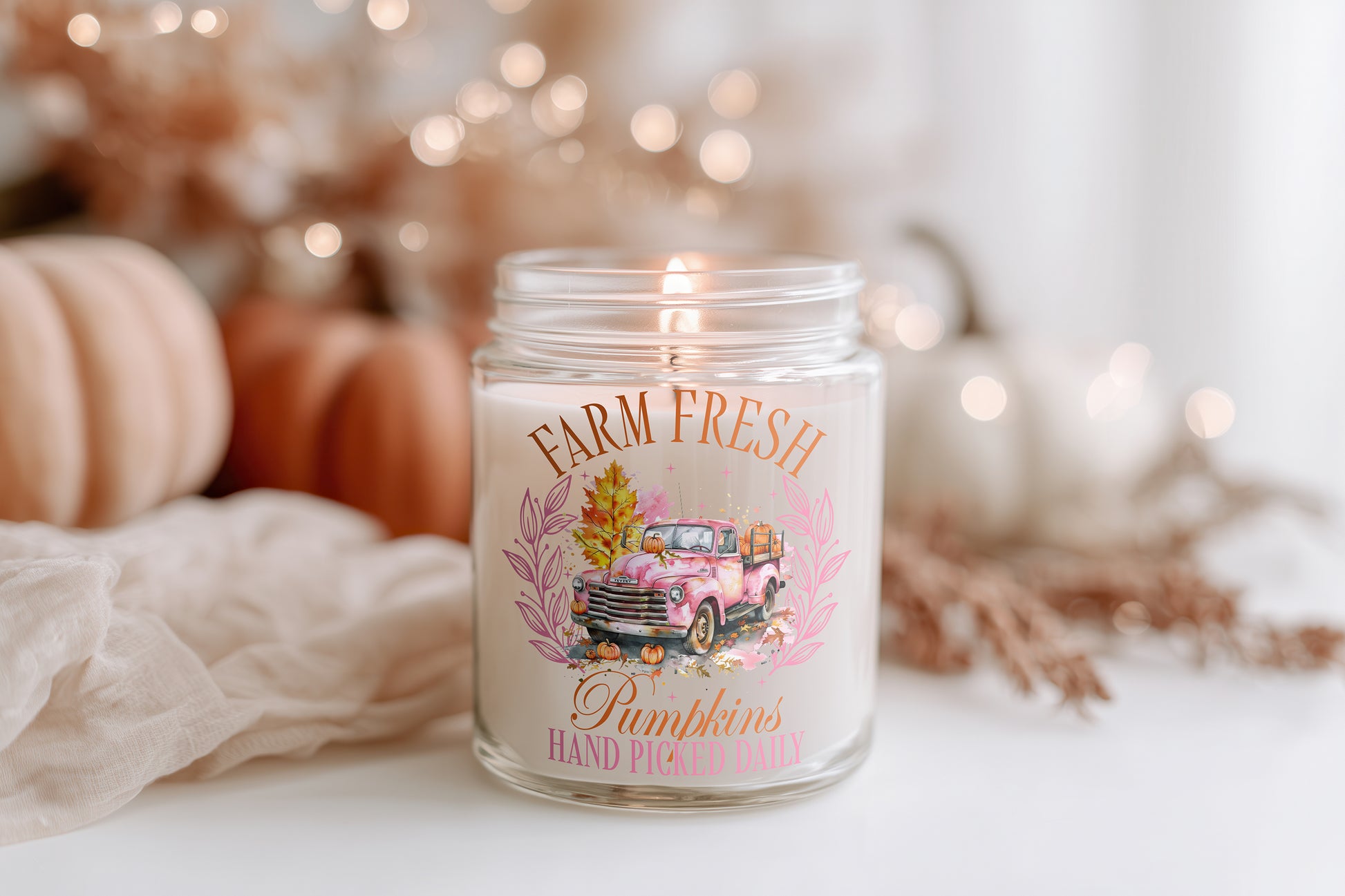 Herbst Kerze Glas Farm Fresh Pumpkins Truck | Duftkerze Sojawachs vegan | Halloween Kürbis Kerze Geschenkidee Frauen | Cozy Home Decor Candle