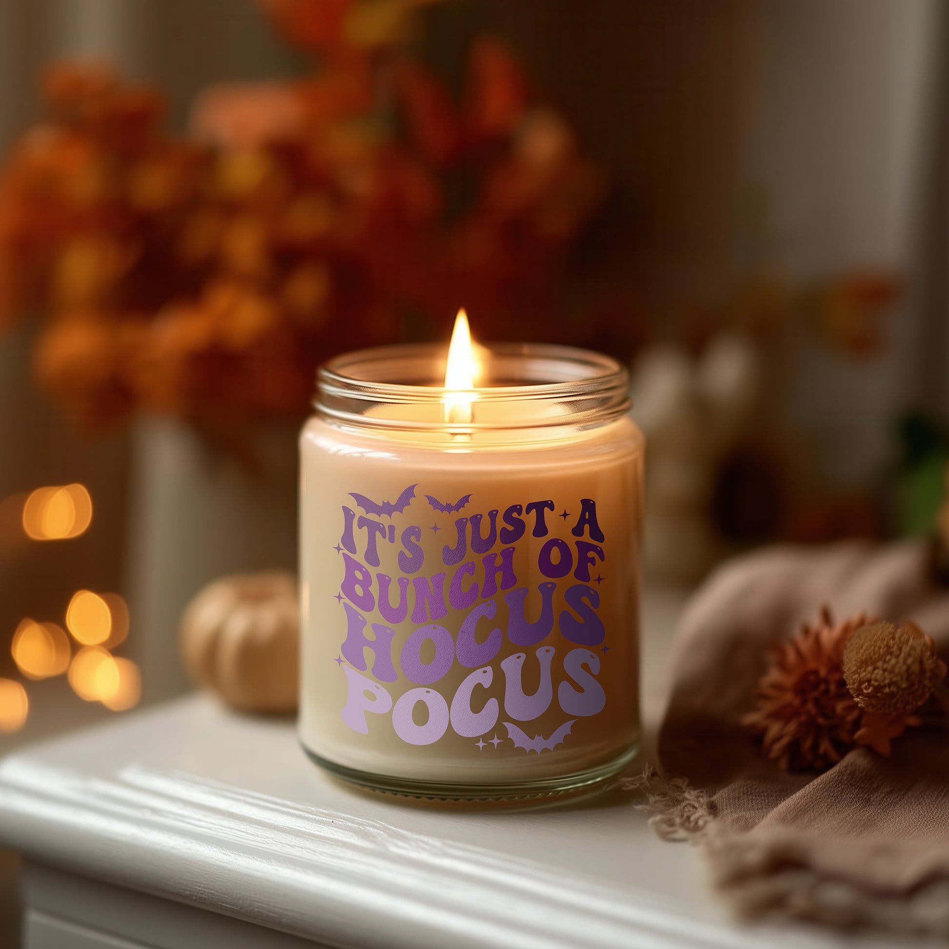 It’s Just A Bunch Of Hocus Pocus Kerze vegane Halloween Duftkerze, spooky Herbstdeko, nachhaltige Geschenkidee Frauen, Sojawachs Kerze im Glas