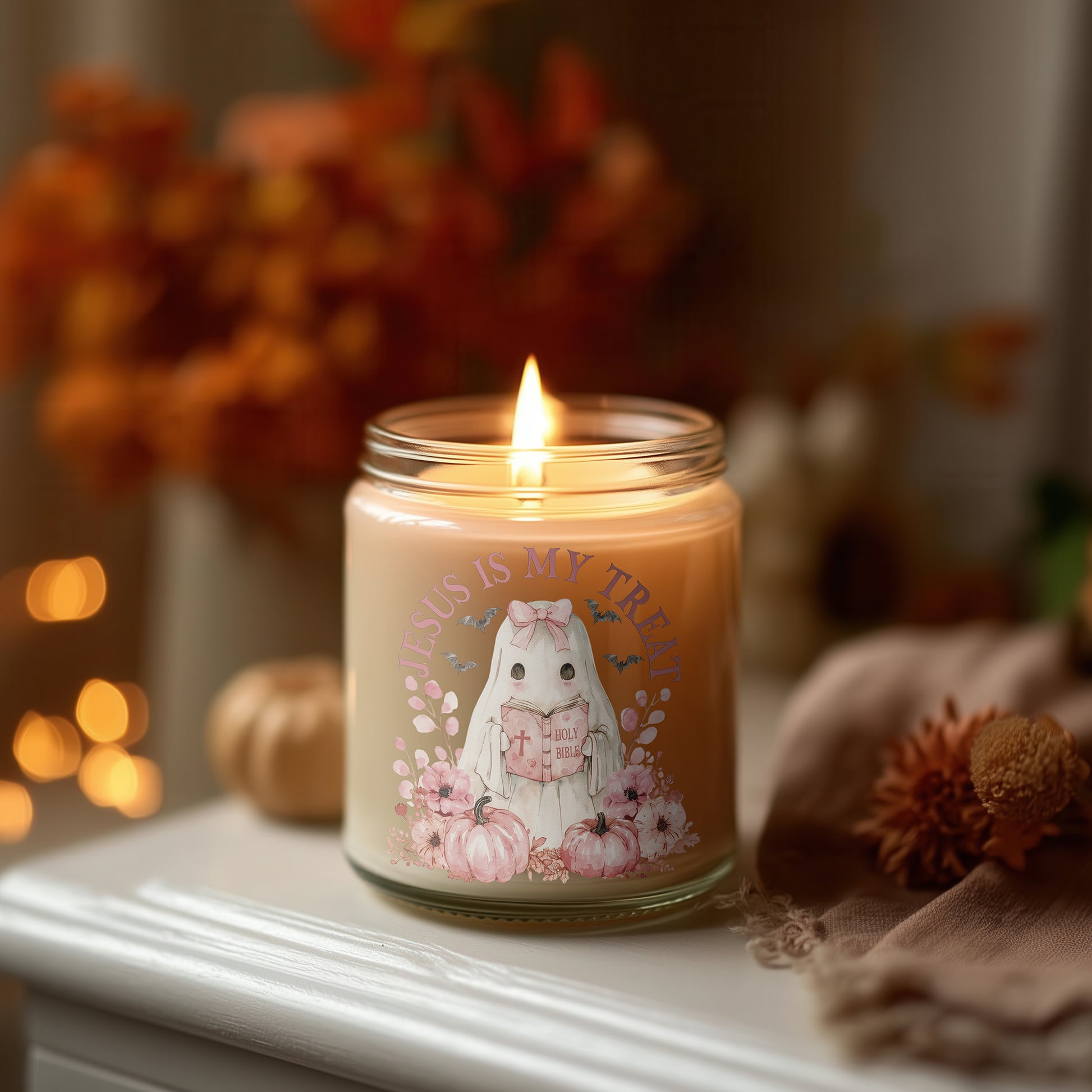 Jesus is my Treat Kerze – Halloween Kerze Herbst Duftkerze Glas Transparent Vegan Sojawachs Christliche Geschenkidee Homedecor