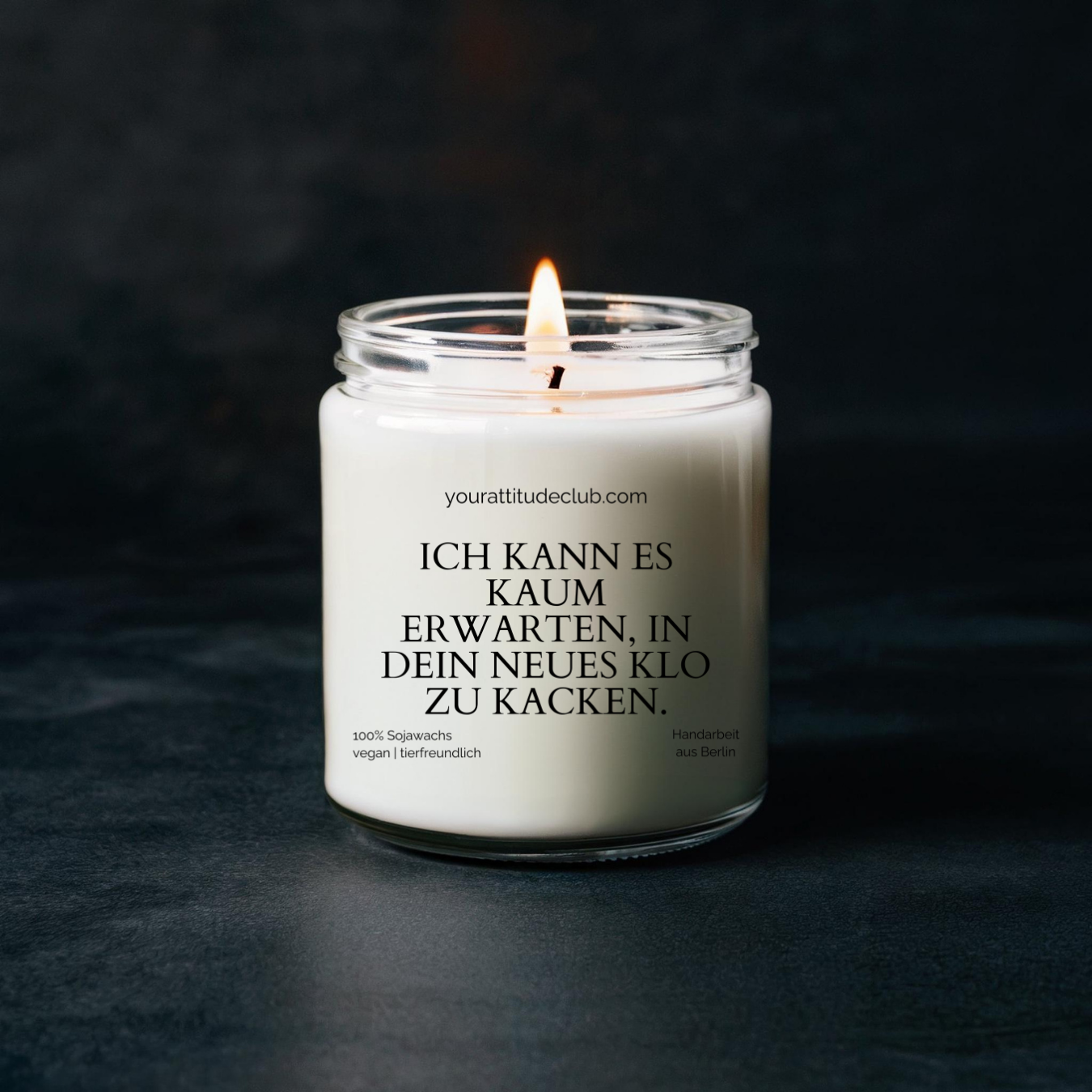 Ich kann es kaum erwarten, in dein neues Klo zu kacken – Lustige Umzugs-Kerze im Glas | Geschenkidee zum Einzug