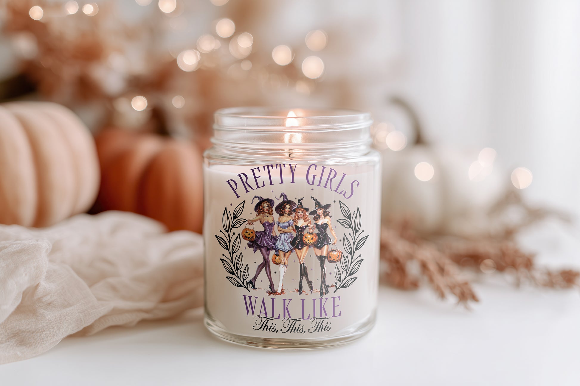 Pretty Girls Walk Like This Kerze Halloween Duftkerze Glas vegan Sojawachs Herbstdeko Geschenkidee Hexen Homedecor