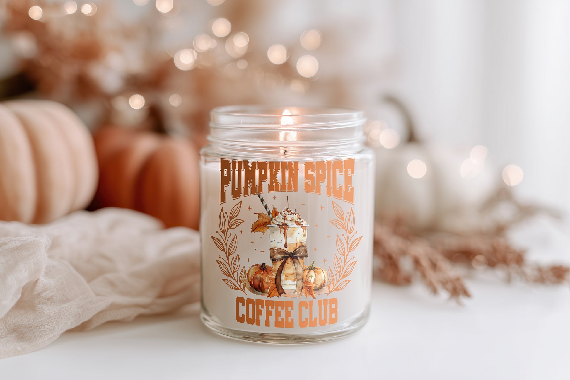 Pumpkin Spice Coffee Club Kerze Herbst Duftkerze vegan Sojawachs Glas Halloween Deko Geschenkidee Cozy Homedecor