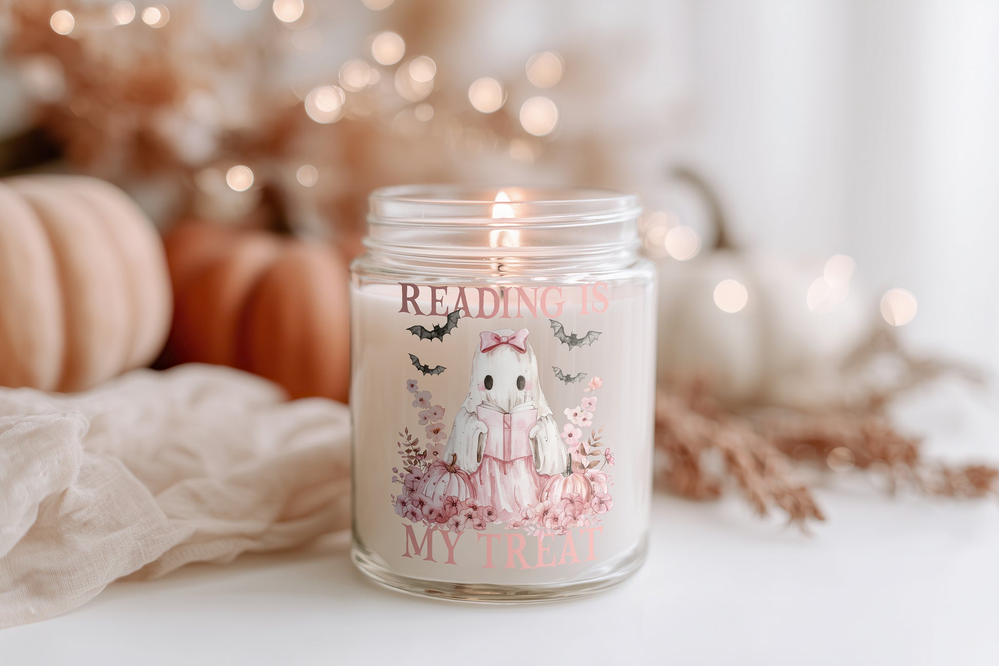 Reading is my Treat Kerze vegane Duftkerze im Glas Herbst Halloween Deko Geschenkidee Bücherliebhaber Candle