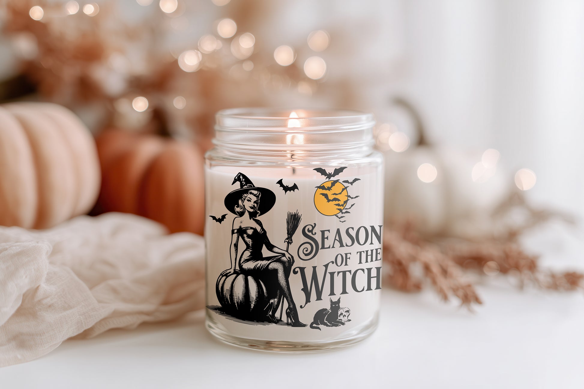 Season of the Witch Kerze Hexe Halloween Duftkerze im Glas, Sojawachs vegan, Herbstdeko, Geschenkidee Frauen, Spooky Season, Hexenmotiv
