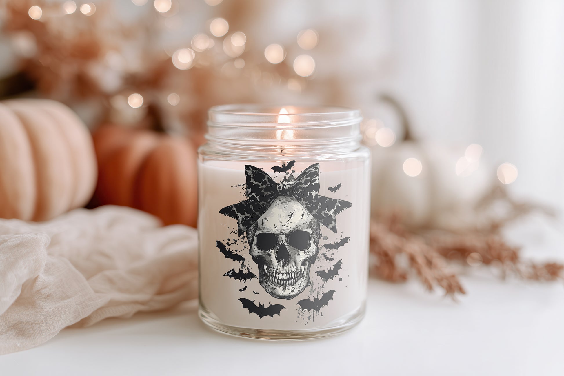 Skull Coquette Kerze Halloween Duftkerze Glas vegan Sojawachs, Gothic Candle, spooky Herbstkerze Deko Geschenkidee Frauen