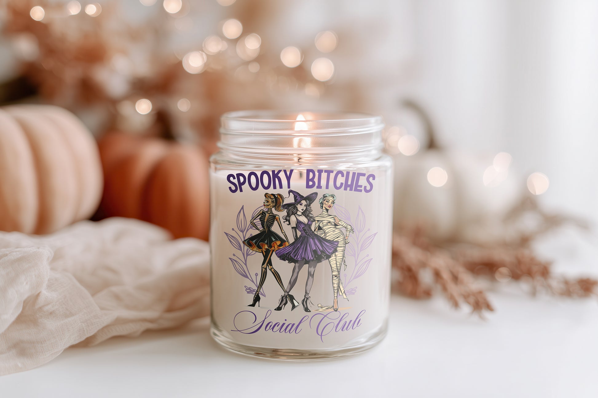Spooky Bitches Social Club Kerze Halloween Duftkerze Glas | Herbst Deko Geschenk Sojawachs vegan nachhaltig Gothic Home Decor