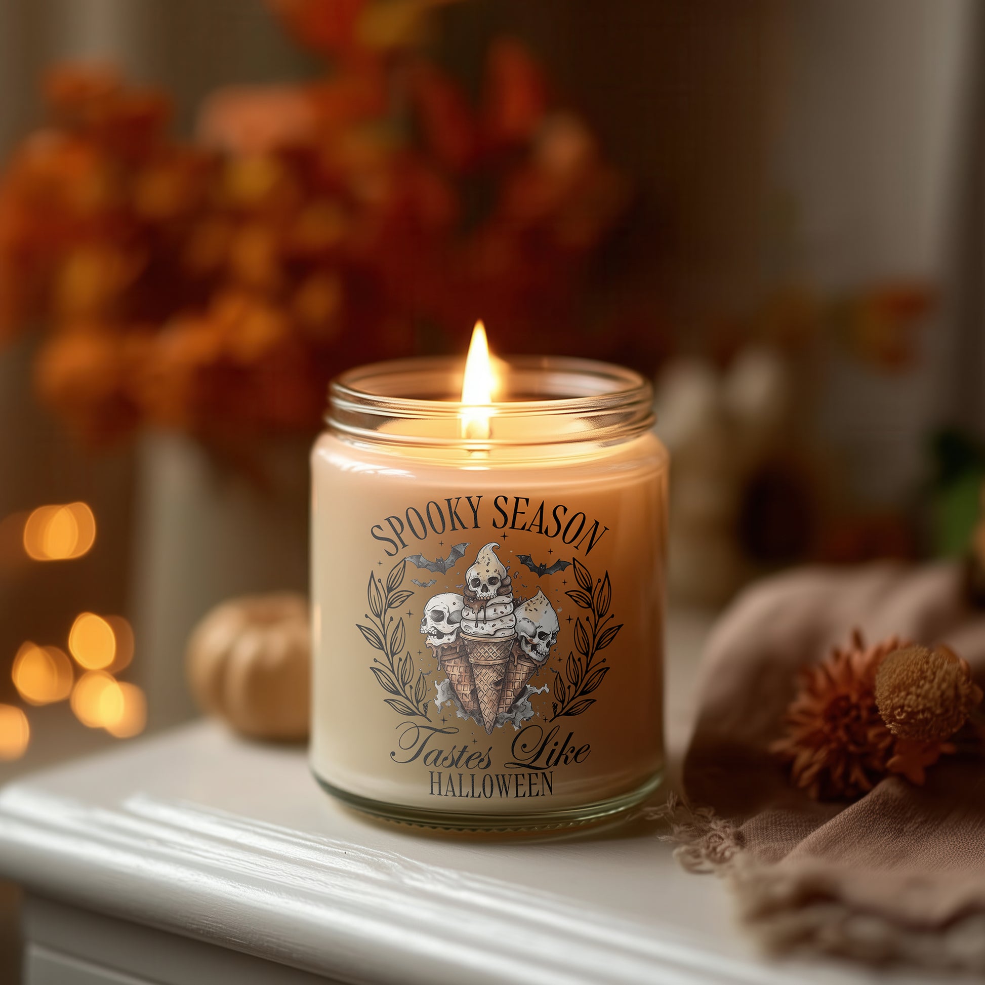 Spooky Season Tastes Like Halloween Kerze vegane Herbst Duftkerze Glas Halloween Deko Geschenkidee cozy vibes nachhaltig