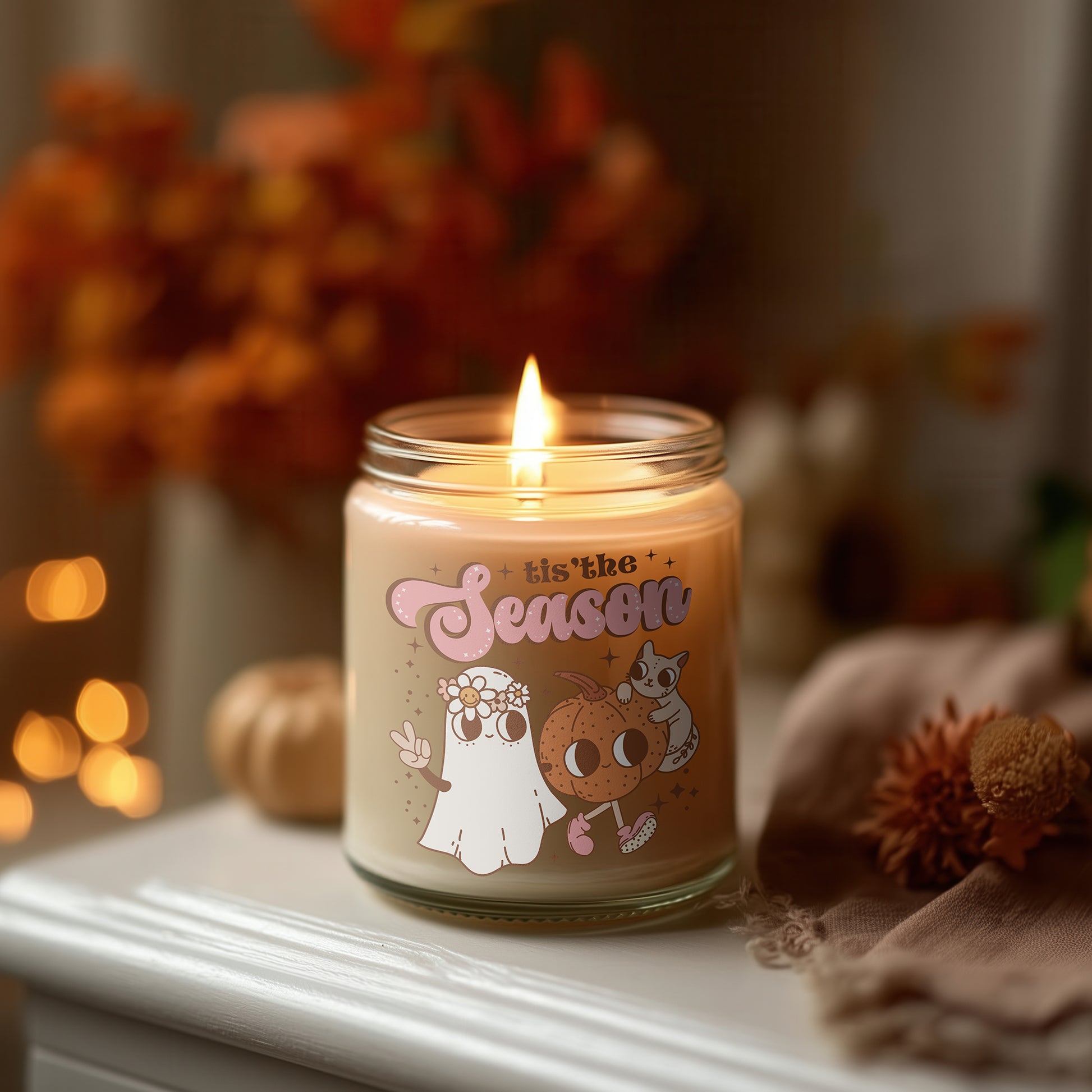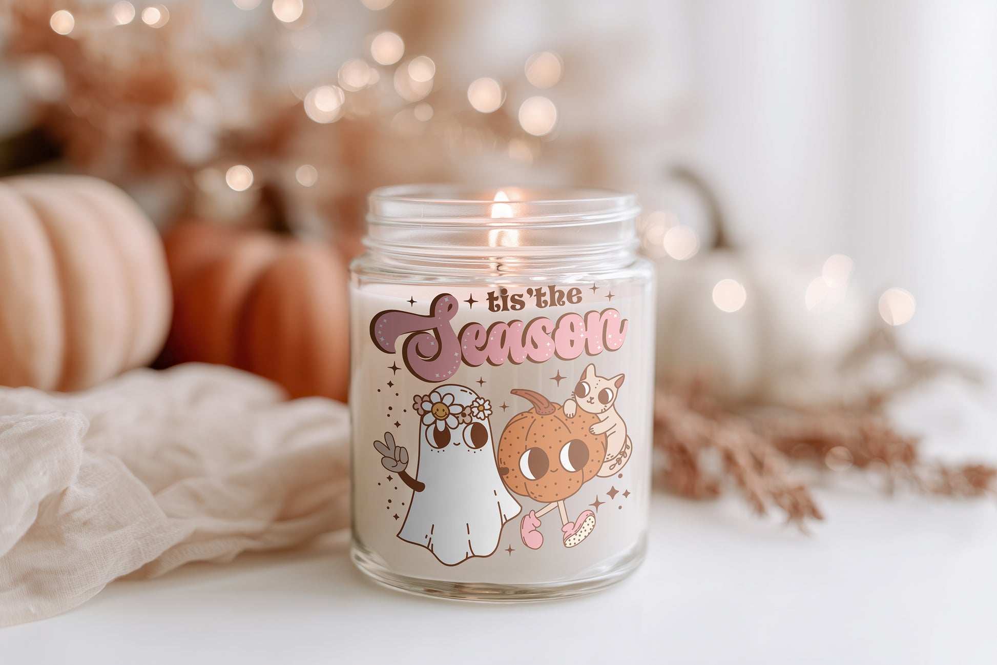 Tis the Season Kerze Halloween Duftkerze im Glas, Sojawachs vegan, Herbstdeko, Geschenkidee Frauen, Cozy Season, Kürbis & Ghost Motiv