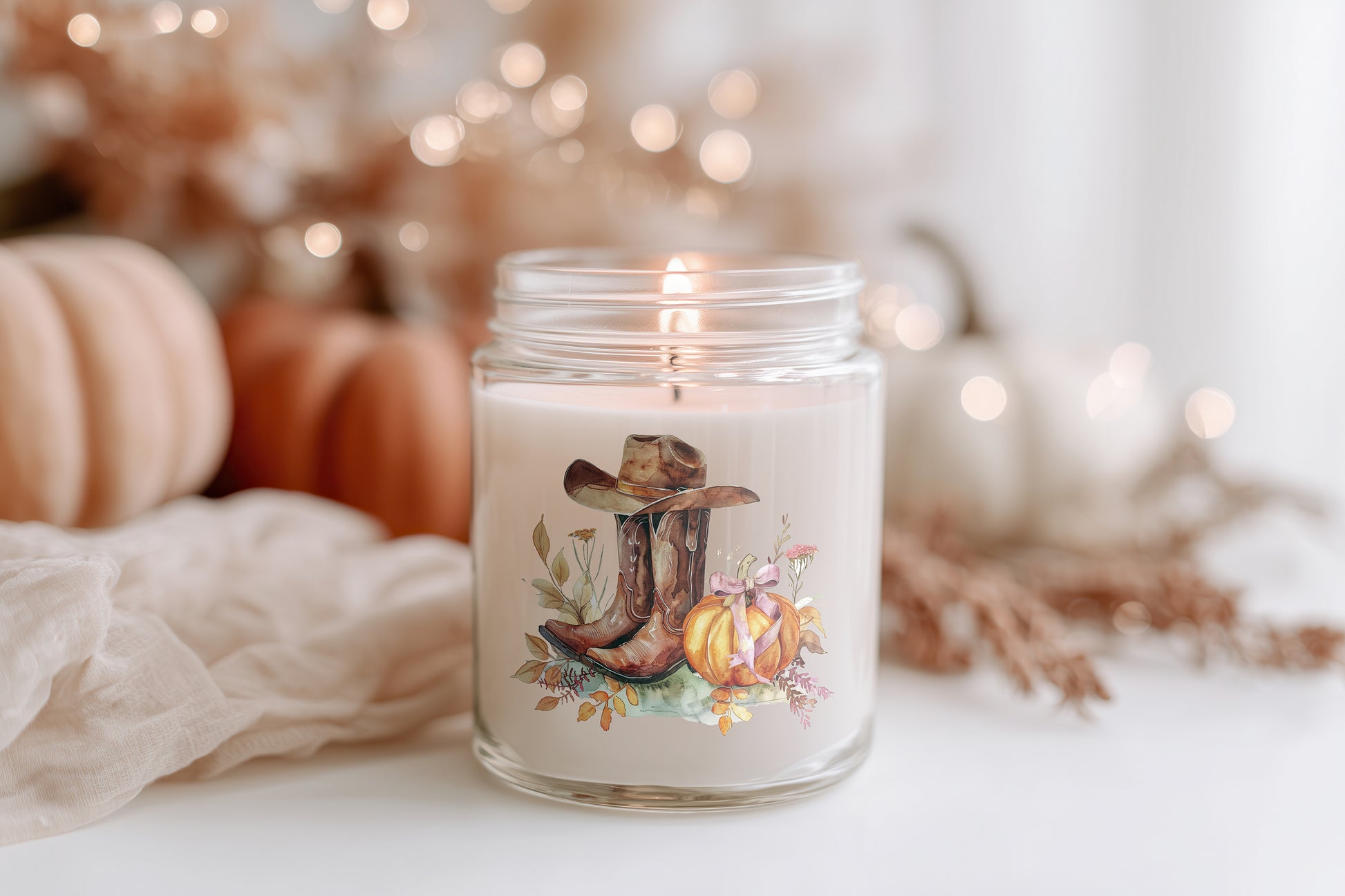 Western Boots Kürbis Kerze Herbst Duftkerze Halloween Kerze vegane Sojawachs Kerze Deko Geschenkidee nachhaltig cozy vibes